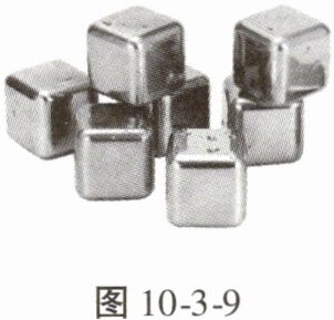 11. 如图10-3-9所示是一种新型的金属冰块,既经济又耐用。现将质量为0.3 kg、温度为-20℃的冷冻金属冰块放入装有0.2 kg水的杯中,最终水温从30℃下降到20℃。若不计热量损失,下列说法不正确的是$[c_{水}=4.2×10³ J/(kg·℃)](