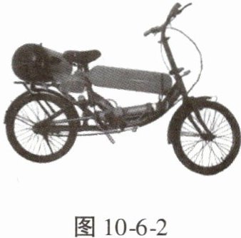 7. 山东某老师发明了一款新能源自行车,如图10-6-2所示,不用脚蹬,只要有空气就能跑。他将空气压缩后存储在高压气罐中,通过控制压缩空气的释放来驱动自行车,完全不依赖汽油或电池,这