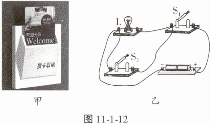 11. (教材习题改编)如图11-1-12甲所示为宾馆房间的取电房卡,将房卡插入槽中,房间内的用电器才能使用,房卡的作用相当于电路中的