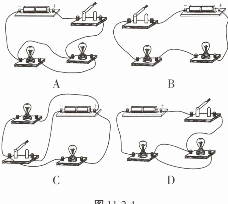 3. 如图11-2-4所示,开关闭合后,两灯泡串联的是(