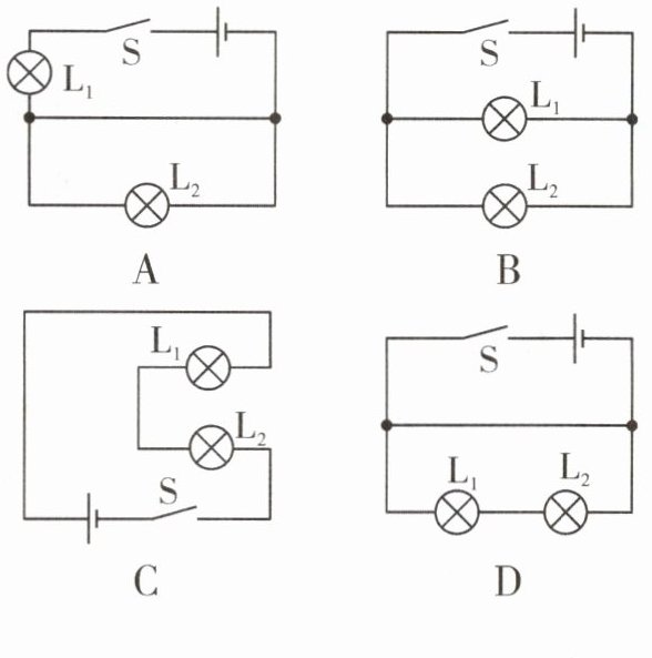 1. 如图11-2-2所示的电路中,闭合所有开关后,灯泡L₁和L₂串联的是(