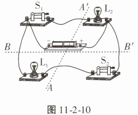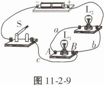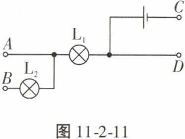 10. 如图11-2-11所示,A、B、C、D是四个接线柱,要使L₁、L₂串联,应用导线连接