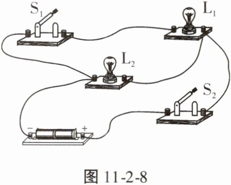 7. 在探究活动中,小明连好了一个实物电路如图11-2-8所示。请你帮他画出这个电路的电路图。