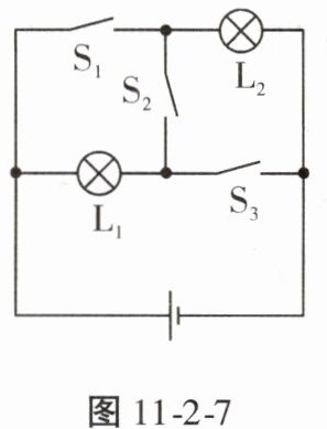 6. 如图11-2-7所示,只闭合开关S₁、S₂时,灯