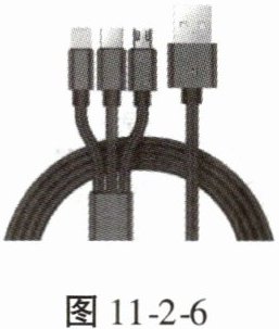 5. (现代科技)如图11-2-6所示,手机充电线的三个插头可同时为三部不同类型的手机充电。那么充电时,这三部手机的连接方式是