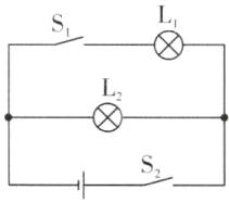 )A.开关S只控制灯L₂,不能控制灯L₁