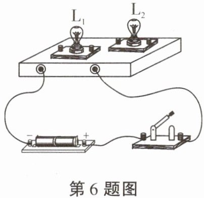 6. 如图所示,暗盒中的两个小灯泡 $ L_1 $ 和 $ L_2 $ 连接在同一电路中,闭合开关,两个小灯泡均发光。若不增加其他器材,请你用最简单的方法判断两个小灯泡的连接方式: