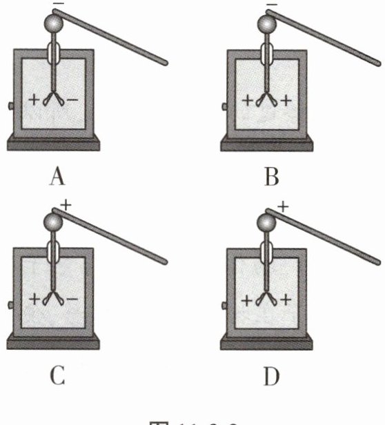 【典例3】将用丝绸摩擦过的玻璃棒接触验电器,能正确表示玻璃棒和验电器金属箔带电情况的是图11-3-2中的(