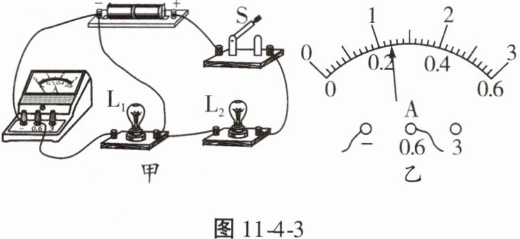 (2) 小明连接了图11-4-3甲所示电路探究串联电路的电流规律。试触开关S,他观察到电流表的指针