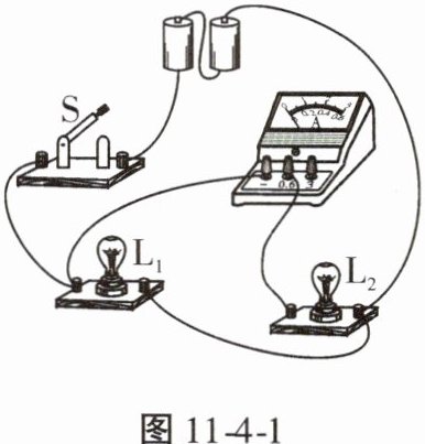 。③如图11-4-5所示,当开关闭合后,小明发现两灯都不亮。为了找到故障原因,他用一根导线来检查。当导线与A、B两点连接时,小灯泡L₁不亮,L₂亮;当导线与B、C两点连接时,两灯都不亮。由此推测故障可能是