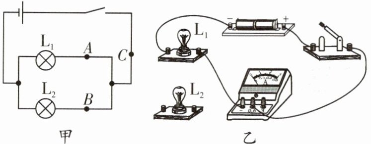 (1) 请根据图11-4-12甲中的电路图,用笔画线代替导线将图11-4-12乙中的电路连接完整,使电流表测量流过灯泡L₁的电流。连接电路时应