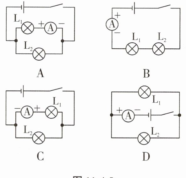 3. 如图11-4-8所示,能够直接正确测出通过灯L₁电流的电路是(