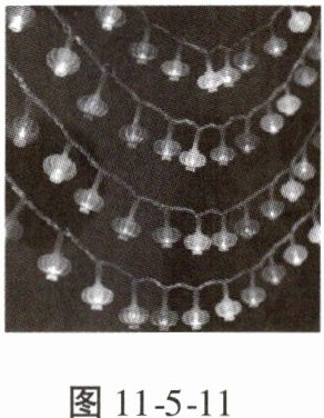 7.(物理与生活)在新年联欢晚会上,小阳同学负责教室装饰彩灯的安装工作。如图 11 - 5 - 11 所示是一些节日的小彩灯,已知一个小彩灯正常工作的电压是 11 V,要使这样的小彩灯在家庭电路中正常工作,需要将