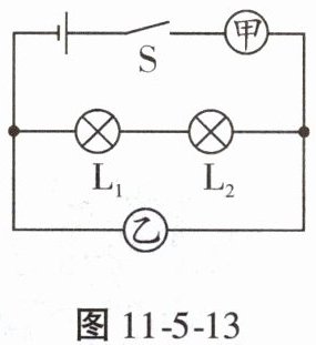 9. 如图 11 - 5 - 13 所示电路,甲、乙两处分别接入电流表或电压表,开关 S 闭合后,两灯均能发光。下列关于甲、乙两个电表的判断正确的是(