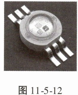 8. 如图 11 - 5 - 12 所示是一个 RGB 灯珠,内含能分别发红、绿、蓝三种色光的发光元件,通电后通过智能控制可发出多种色光及白光。由此可知三个发光元件是