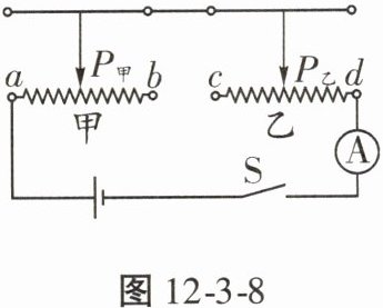 10.(教材习题改编)如图12-3-8所示,将甲、乙两个滑动变阻器串联在电路中,它们的滑片P甲、P乙左右移动时,下列说法正确的是(