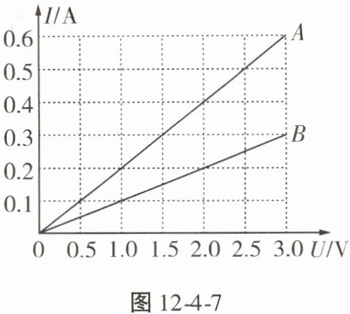 5. 如图12-4-7所示是电阻A和B的I-U图像,下列说法正确的是(