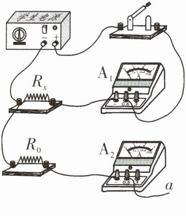 D.若导线a的右端与A₁的“-”接线柱连接,则Rₓ=$\dfrac{I_{1}R_{0}}{I_{1}-I_{2}}$