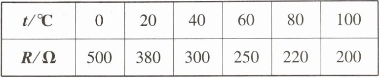 $\Omega$;b. 保持滑动变阻器的阻值不变,把传感器探头放入热水中,过一段时间后闭合开关,发现灵敏电流表的读数为$20\ mA$,则热水的温度为