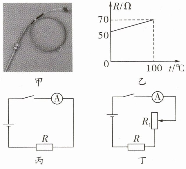 $\celsius$。(4) 该实验小组为了使温度从$0\ \celsius$开始测量,又设计了图12-6-3丁所示的电路图,其中$R$为铜热电阻,$R_{1}$为滑动变阻器,并进行了如下操作:
