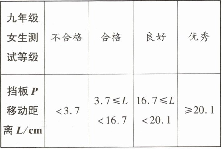 $V$。下表为九年级女生“坐位体前屈”国家体质标准,若小华进行测试时电压表示数为$3V$,则她的测试等级为合格