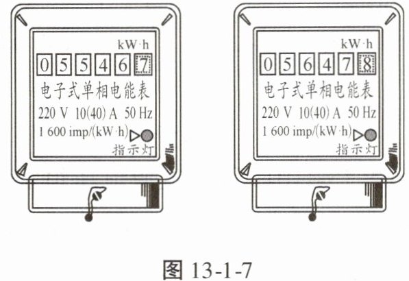 8. 如图13-1-7所示分别是小茗家上月初和上月末电能表的示数。结合表盘上的信息可知(