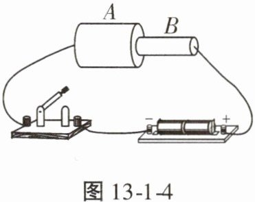 3. 如图13-1-4所示,导体A、B是由同种材料制成的,A和B等长,但A比B的横截面积大。当开关闭合后,在相同时间内,下列说法正确的是(