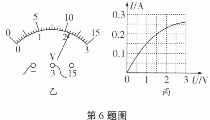 (2) 闭合开关,移动滑片,电压表的示数如图乙所示,为