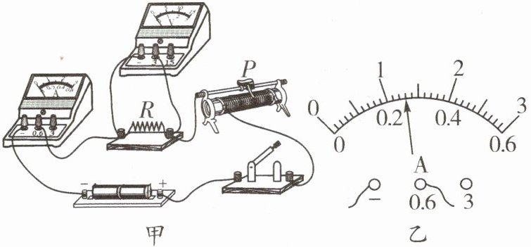 (4) 排除故障后小组同学继续实验,当电压表示数为$2.6V$时,电流表示数如图乙所示,则定值电阻的阻值为