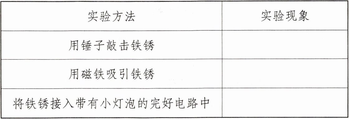 ( 1 ) 小明刮下哑铃上的铁锈,使用以下方法进行了实验,请你帮他填写下表。
