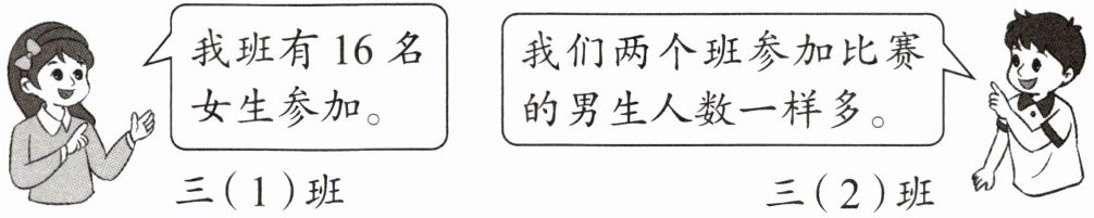 2. 三年级正在举办“我是书香好少年”评选活动,三(1)班有27人参加评选,三(2)班有34人参加评选。根据下面的对话,三(2)班有多少名女生参加评选?