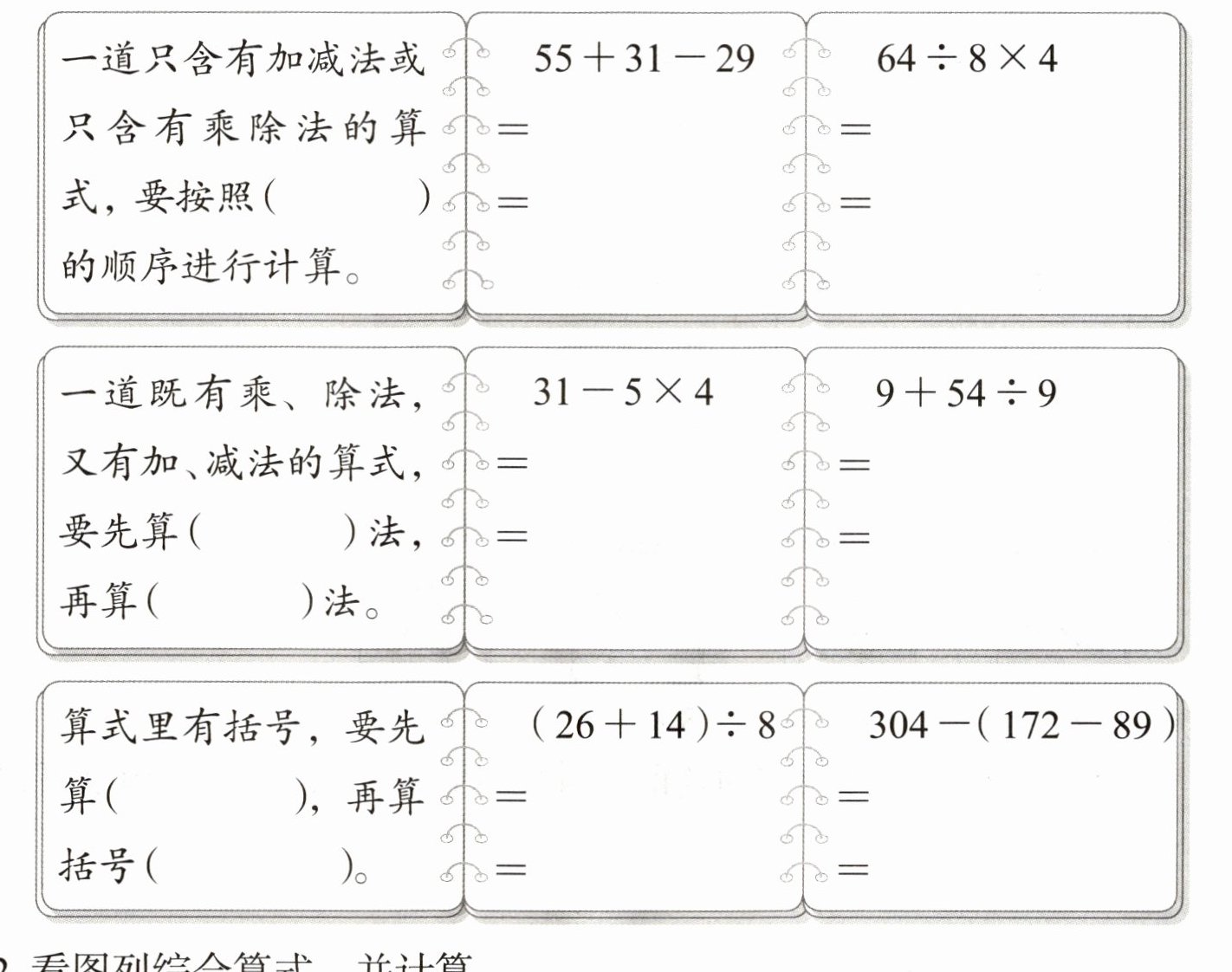 2. 看图列综合算式,并计算。