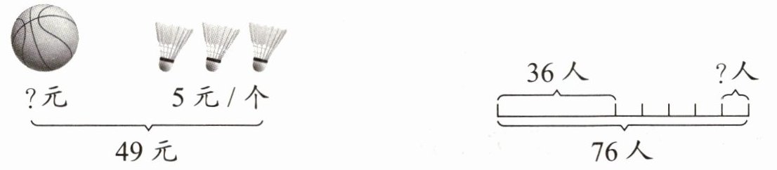 2.49 - 5×3 = 34(元) (76 - 36)÷5 = 8(人)