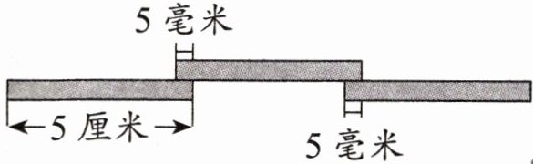 5. 将 3 根长短相同的木棒粘在一起,粘好如下图,这 3 根木棒粘在一起有多长?