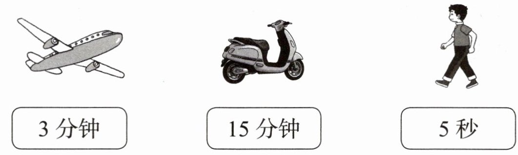 3. 用下面的出行方式行1千米各需多长时间? 估一估,连一连。