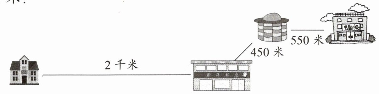 2. 明华从家走到电影院看电影,看完电影后又原路返回,一共走了多少千米?