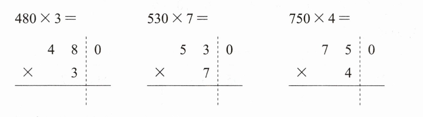 $\begin{array}{|c|}\hline43 × 3 = \\430 × 3 = \\4300 × 3 = \\\hline\end{array}$