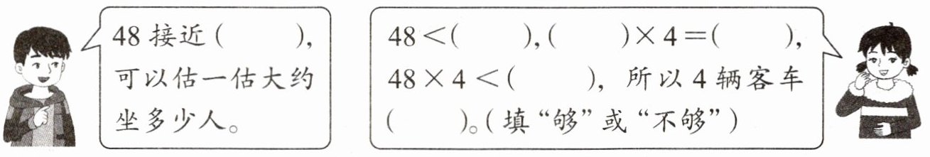 1. 三年级师生共200人乘车去研学,每辆客车限乘客48人,4辆客车够吗?