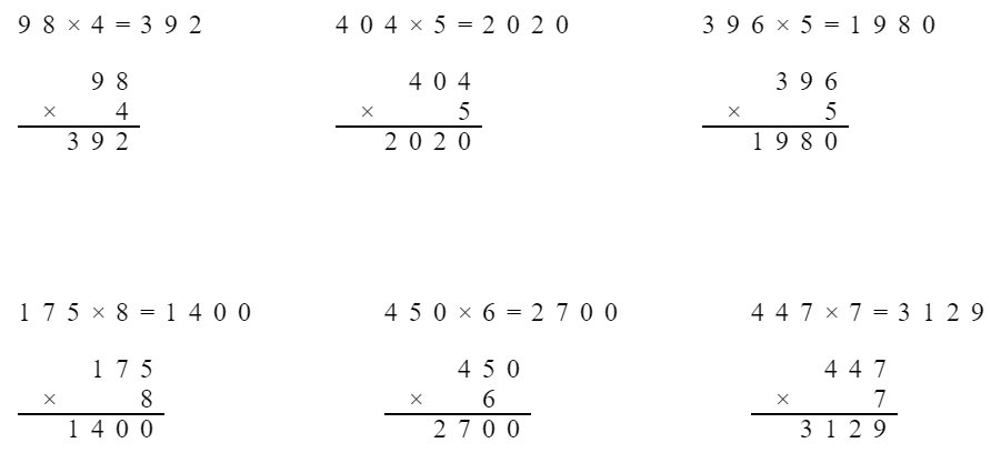$98×4=$ $404×5=$ $396×5=$