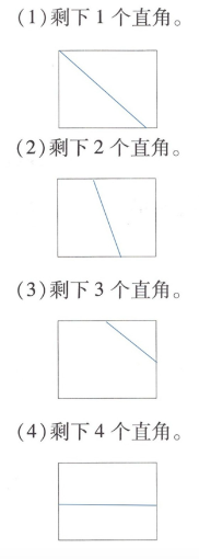 4. 按要求在长方形的纸上剪一刀,该怎么剪?在图上画一画。