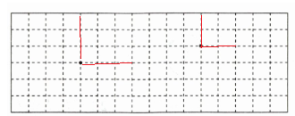3. 在方格图上画两个方向不同的直角。(已给定的点为顶点)