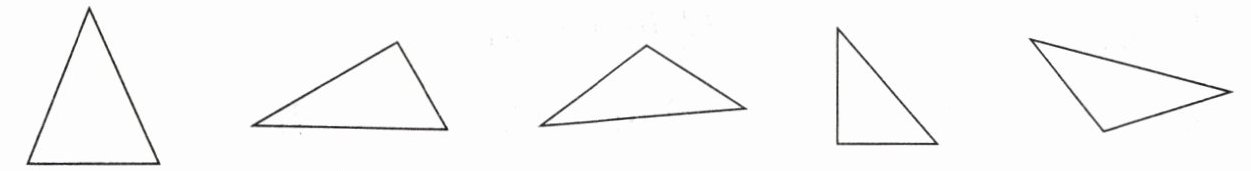 1. 给下列三角形的锐角涂红色,给直角和钝角涂蓝色,你有什么发现?