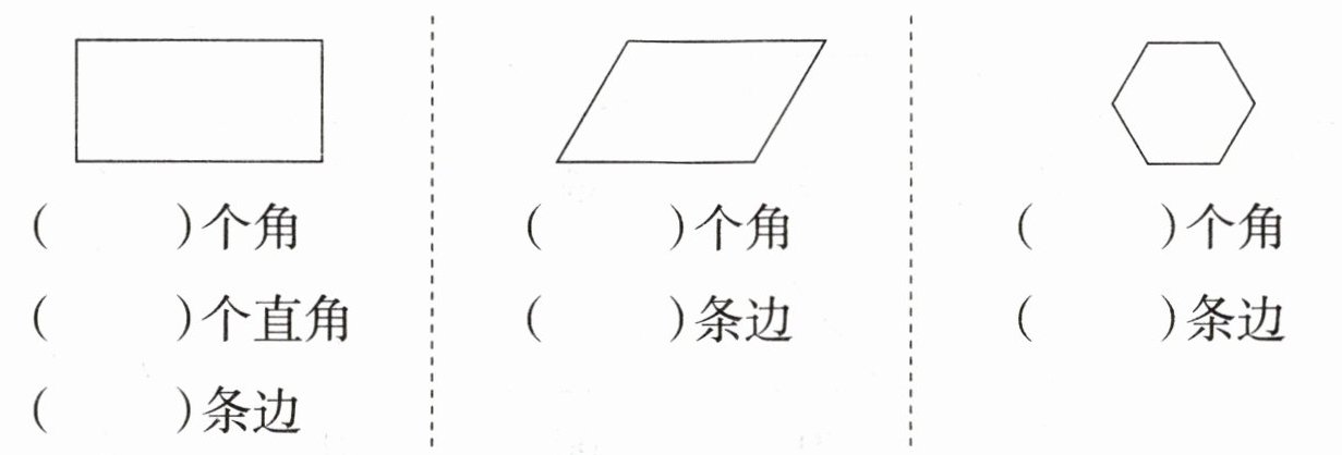 2. 下面的图形中各有几个角?几条线段?用圆规比一比每个图形中各条线段的长度。