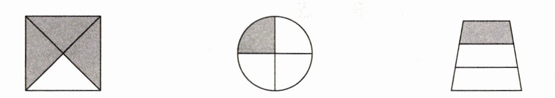2. 下面的分数能表示各图中的涂色部分吗?能的画“√”,不能的画“×”。