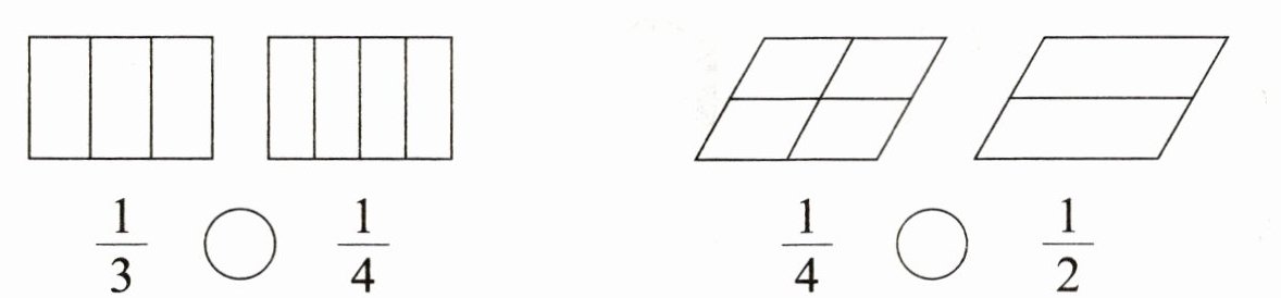 $ \frac{1}{3} > \frac{1}{4} \frac{1}{4} < \frac{1}{2} $小
