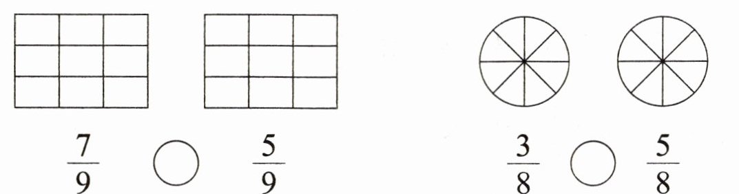 $ \frac{7}{9} > \frac{5}{9} \frac{3}{8} < \frac{5}{8} $大