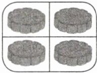 (1) 如图,1盒月饼平均分成4份,每份是这盒月饼的(