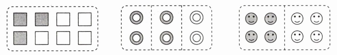 3. 先数一数,再分别圈出各图中小鸟总数的$\dfrac{2}{3}$,最后填一填各有多少只。