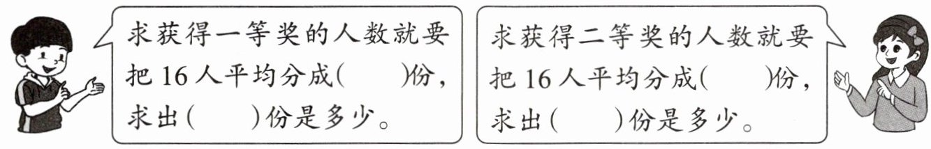 求获得二等奖的人数就要把 16 人平均分成(