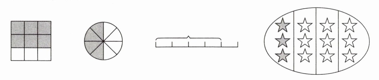 6. 看图写分数。